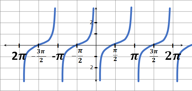 - Dominio: R- {(2n + 1) π/2, n ϵ Z}